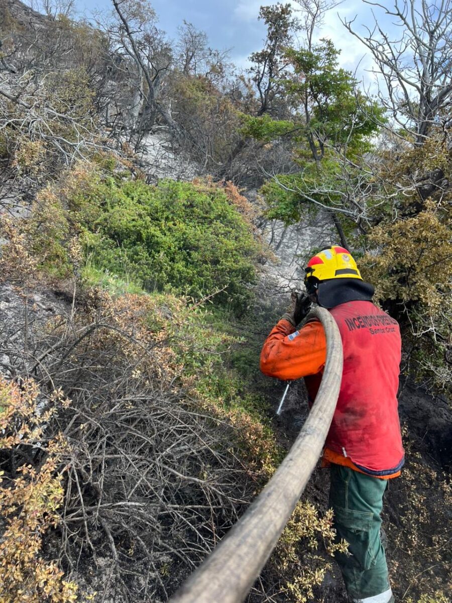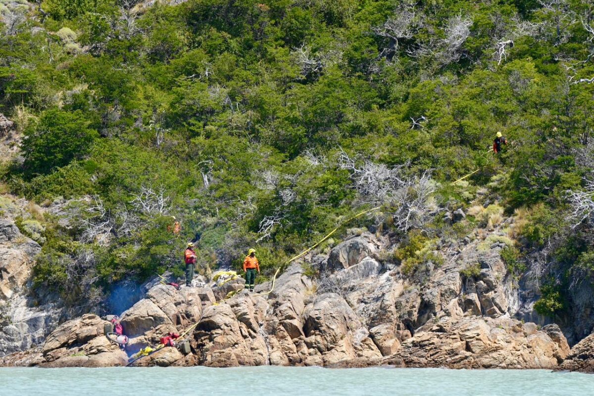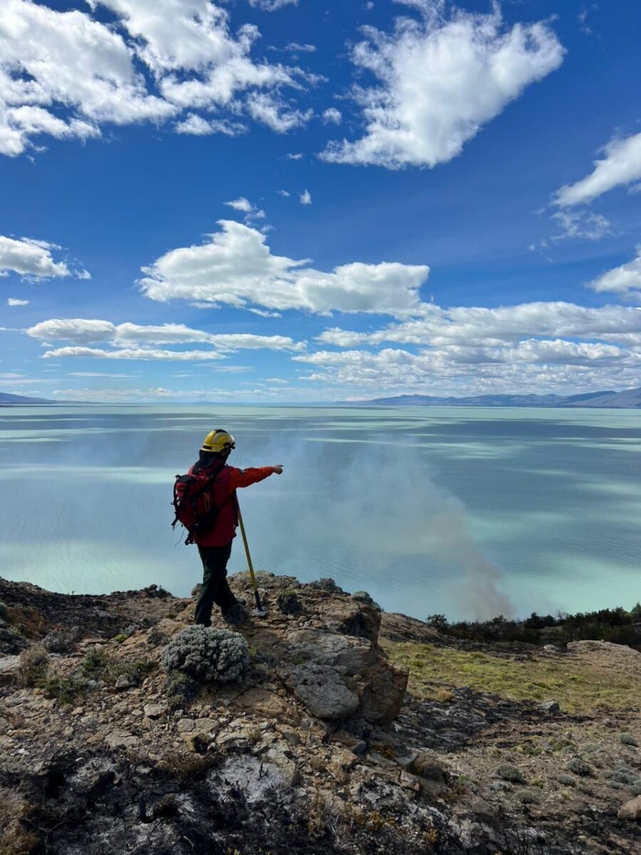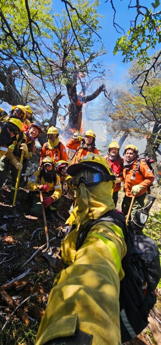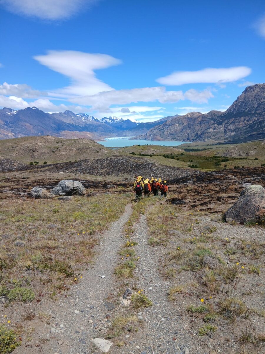 Por su parte, el grupo local de brigadistas del Parque Nacional Los Glaciares intervino tanto en la línea de fuego como en tareas operativas, cumpliendo un rol central en la planificación y ejecución de las acciones de control del incendio.